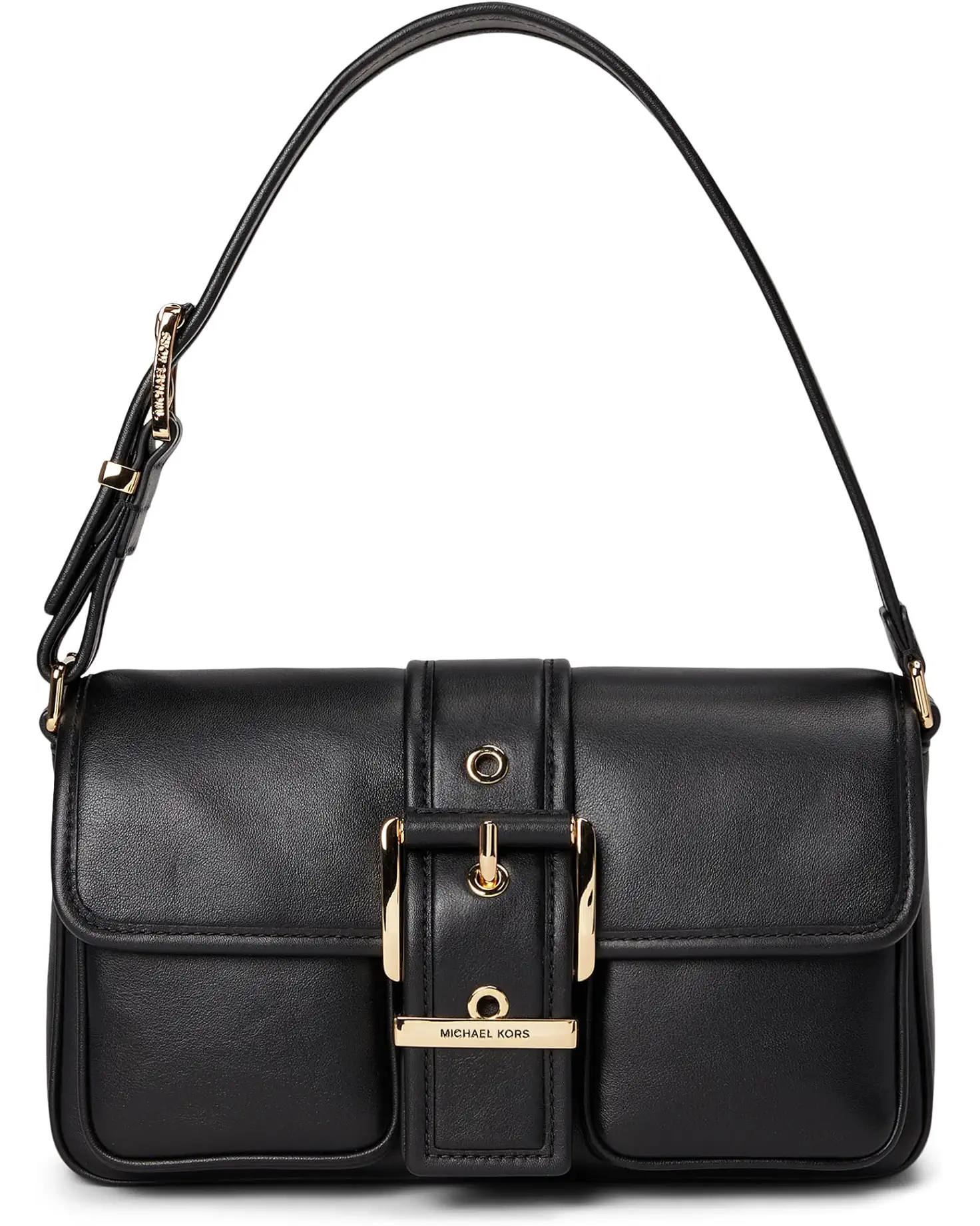 - Look effortlessly stylish, wherever you go carrying the MICHAEL Michael Kors® Colby Medium Shoulder. Crafted from leather, this bag features flap closure with adjustable buckle detailing, adjustable shoulder strap, one interior zippered closure, and one interior slip pocket.